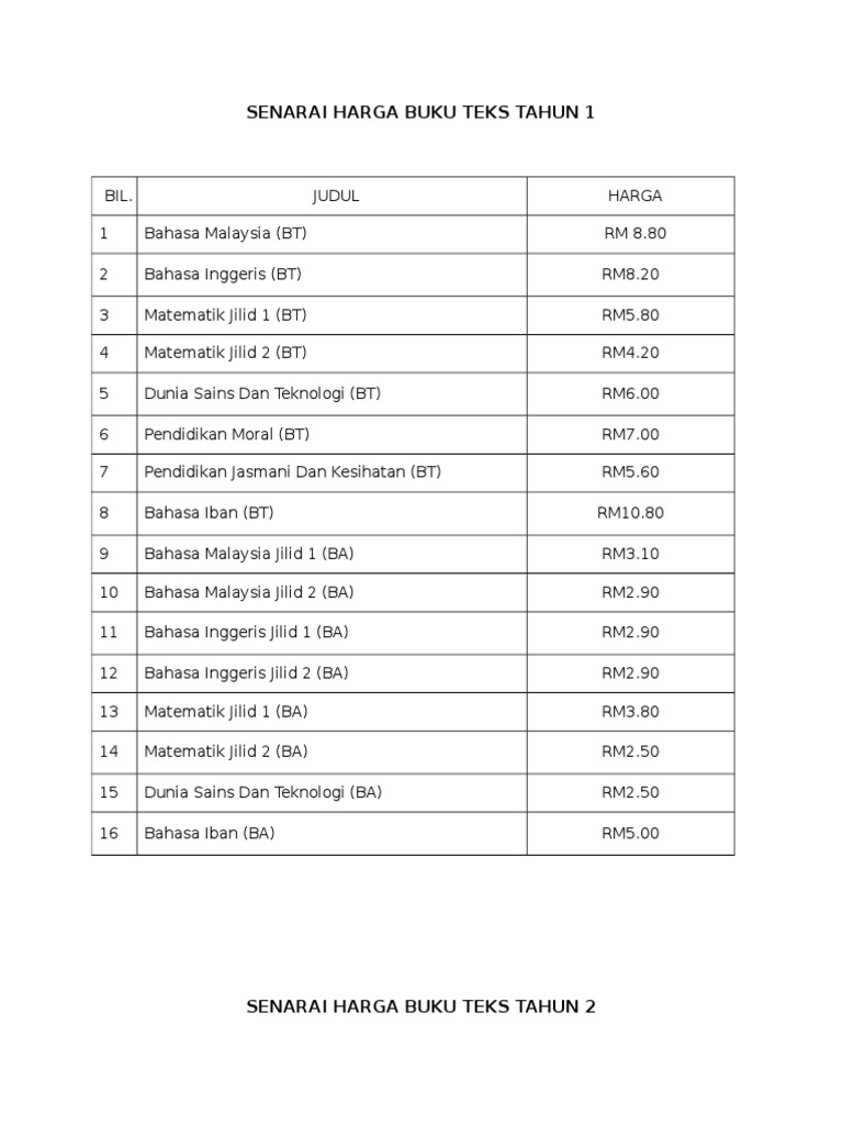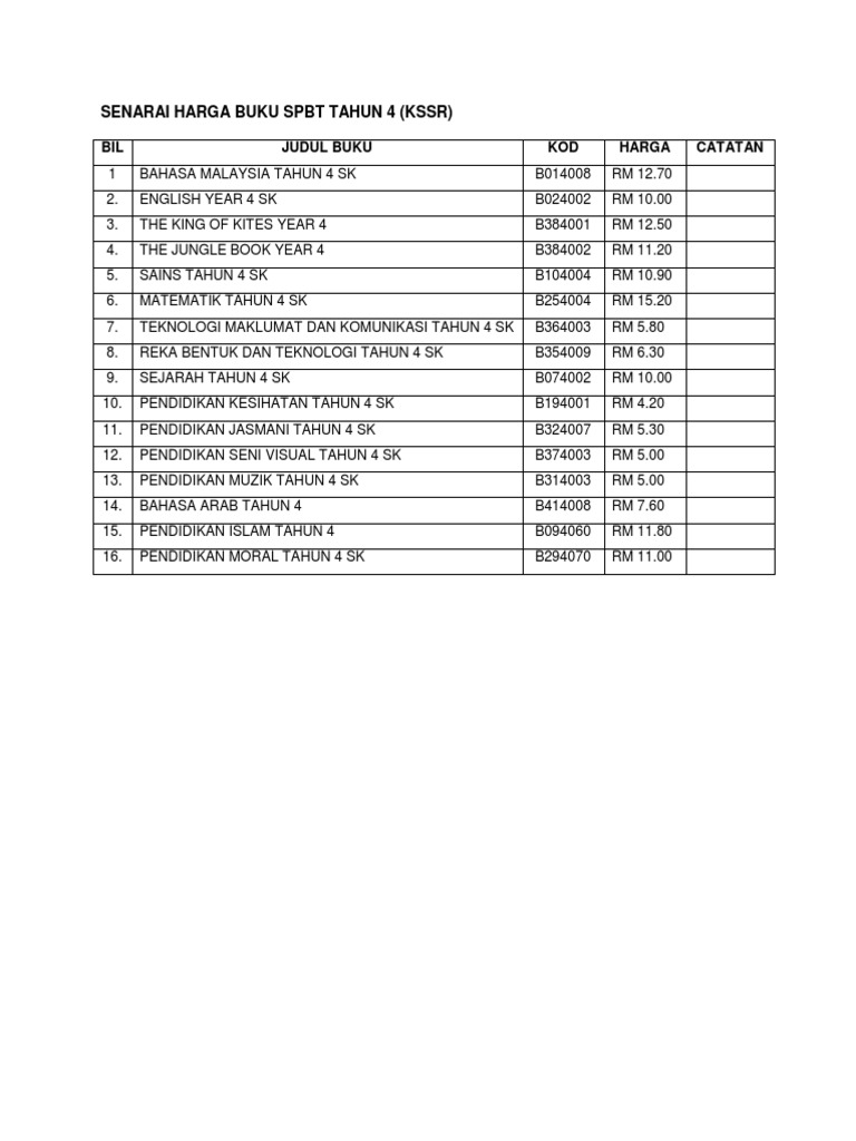 Senarai Harga Buku Kssr Tahun 4 Pdf