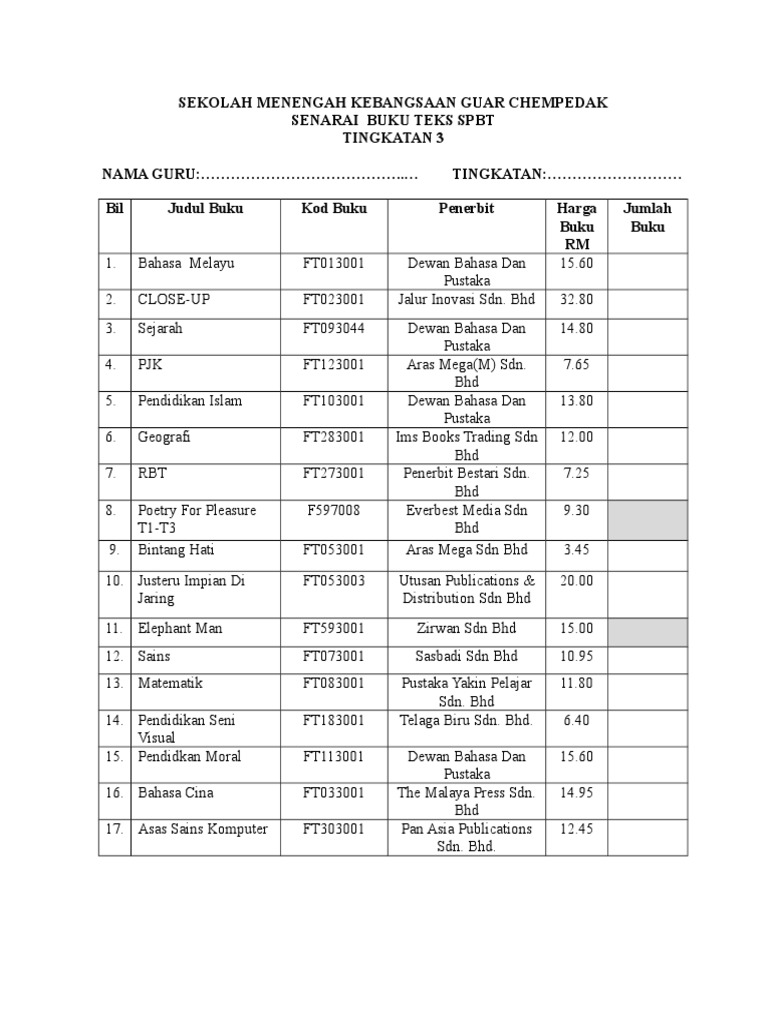 Senarai Buku Teks Tingkatan 1 Isaiahctzx