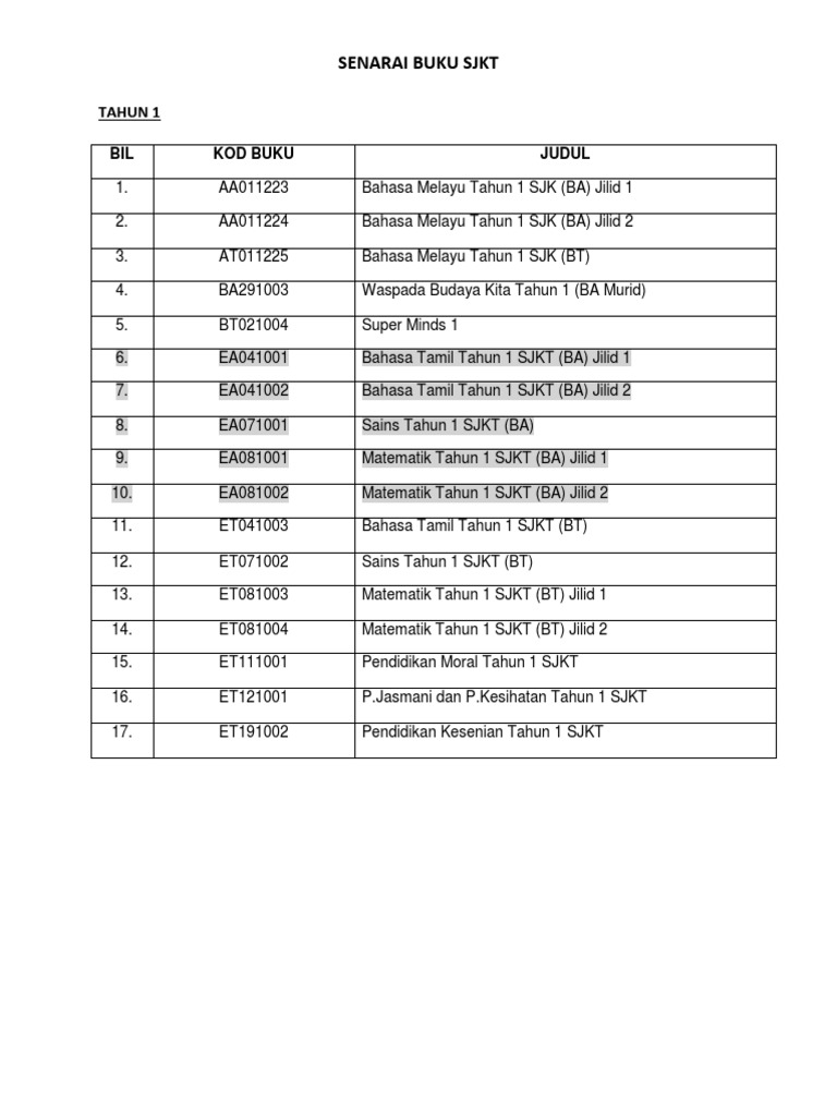 Senarai Buku Teks Sjkt 2020 Pdf